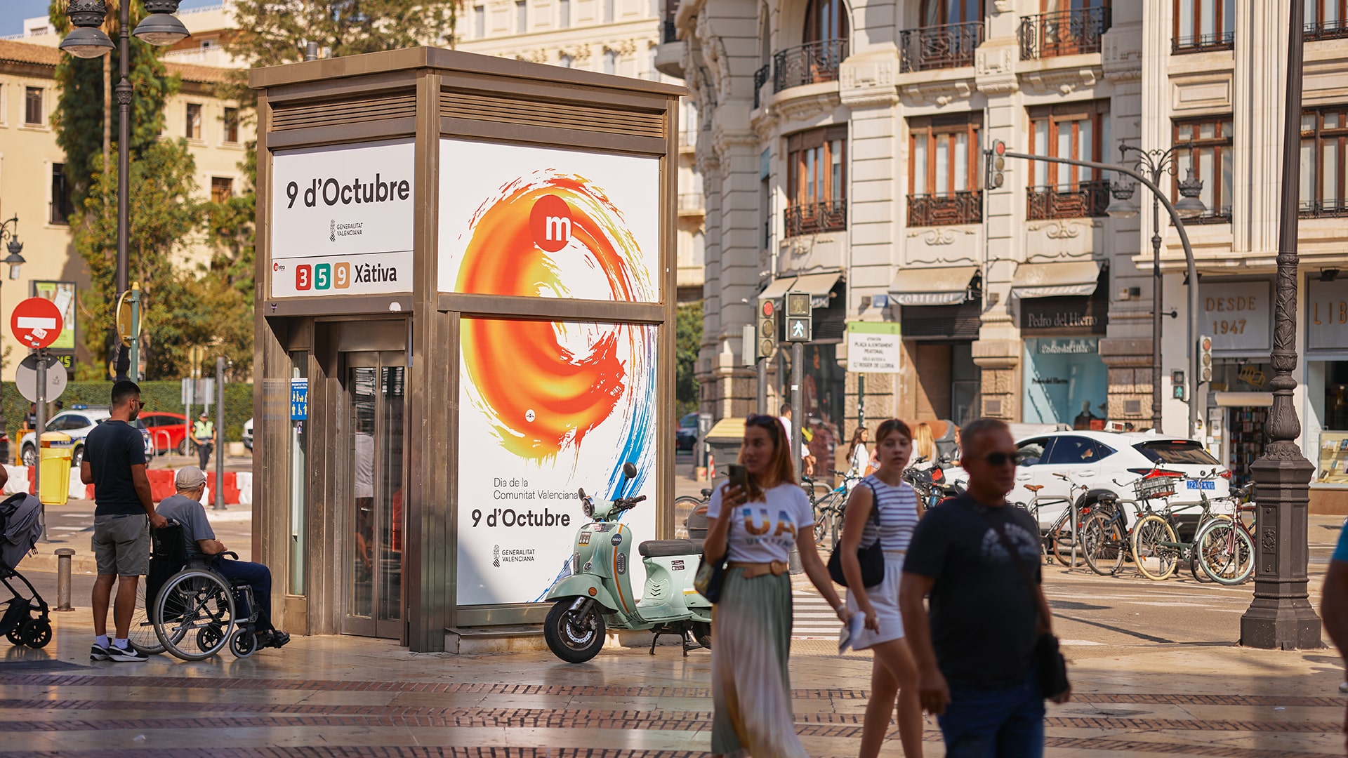 La Generalitat Valenciana celebra cada año con una imagen institucional diferente el día de la Comunitat Valenciana. La imagen se implanta en soportes de la campaña institucional en toda la Comunitat valenciana, y tiene una duración de 15 días: Cartelería, vallas publicitarias, mupis, publicidad en autobuses, proyecciones sobre fachadas y video mapping, animación en video, banners para webs y rrss, rollups, traseras institucionales y prensa tanto digital como impresa. En el briefing se especificaban las piezas y adaptaciones así como las fechas de entrega, no había ninguna instrucción previa, por lo que había total libertad creativa. El único condicionante es que la imagen fuera adaptable a todos los soportes, sobre fondo blanco y el logo de la Generalitat Valenciana en negro.